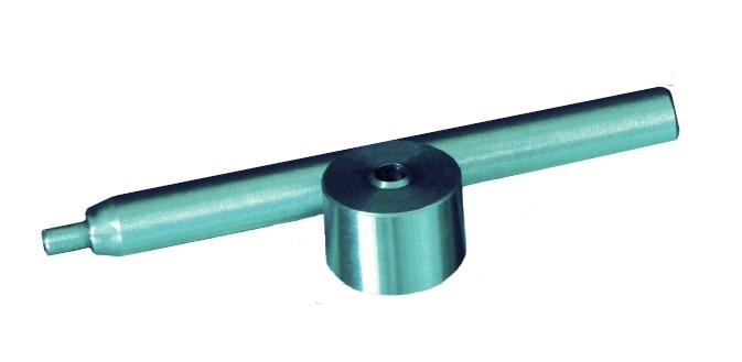 После нескольких выстрелов установочный карман (гнездо) капсюля воспламенителя может расшириться. Капсюль в нем держится слабо и иногда может выпасть даже в процессе снаряжения патрона. Корректор капсюльного гнезда вернет обратно внутренний посадочный диаметр капсюльного гнезда к своему первоначально размеру. Для этого гильза без капсюля устанавливается на наковальню, а корректирующий стержень устанавливается в капсюльное гнездо. Резкий удар молотком восстанавливает диаметр капсюльного гнезда. Вес - 160 грамм.