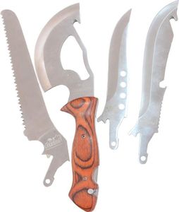 Универсальный туристический набор инструментов "Следопыт" PF-TSP-C01 станет незаменимым помощником в туристическом походе, на рыбалке или охоте. С помощью набора можно напилить и нарубить дров для костра, приготовить еду, открыть банку или бутылку, выполнить работы по обустройству лагеря, изготовить засидку или скрадок, а так же защитить себя в случае необходимости. Набор включает в себя одну универсальную удобную рукоятку длиной 123 мм с фисирующим механизмом и 4 сменных лезвия:
