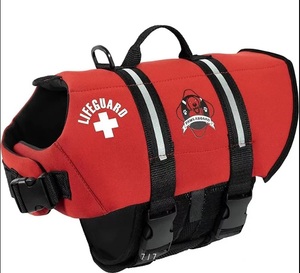 Спасательный неопреновый жилет для собак. Размер "М" - для собак весом от 9 до 23 кг. Изготовлен из неопрена, обладает плавучестью. Жилет оборудован креплением для поводка, ручкой для удержания и светоотражающими полосами. Фиксация на шее и груди липучками и ремнями с застежкой фастекс. Ремни регулируются. Жилет легкий и удобный. Цвет красный. Длина по верхней части - 35 см. Вес - 290 грамм.