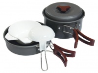 Набор посуды на 1-2 персоны. Приобретая набор, Вы всегда найдете именно то, что может Вам понадобится во время отдыха на природе или в путешествии. Губка для мытья посуды обязательно пригодится Вам и избавит Вас от лишних неудобств во время отдыха на природе. Предметы легкие, удобно складываются друг в друга и упаковываются в прочный тканевый мешочек — наборы займут мало места в сумке и почти не прибавят веса Вашему грузу.