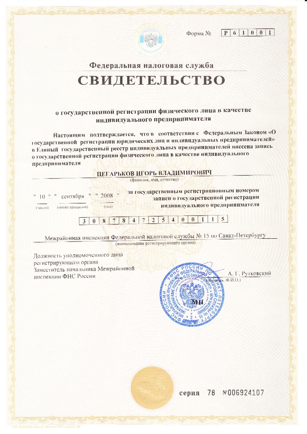 Индивидуальный предприниматель Пегарьков Игорь Владимирович |