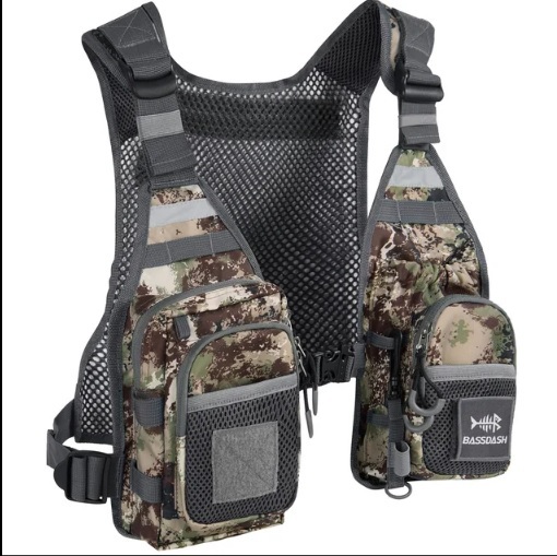 Ультралегкий разгрузочный жилет для рыбалки Bassdash. Жилет изготовлен из прочного полиэстера. Очень легкий и в то же время функциональный. Подходит для ходовой рыбалки. Множество внутренних и внешних карманов позволяют разместить все необходимое для рыбалки. Размер жилета можно регулировать с помощью боковых ремней и регулируемого ремня на груди с застежкой фастекс. Лямки с мягким наполнителем также регулируются по длине. Легкая сетчатая подкладка обеспечивает хорошую воздухопроницаемость. Цвет - камуфляж. Вес - 360 грамм.